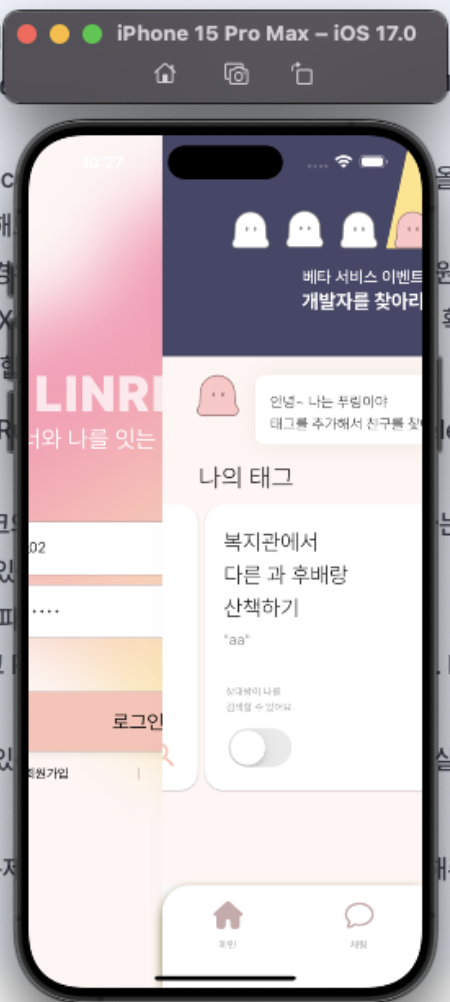 위는 문제 상황에 대한 스크린샷으로 Swipe Back을 통하여 로그인 화면으로 돌아가는 모습이다.
