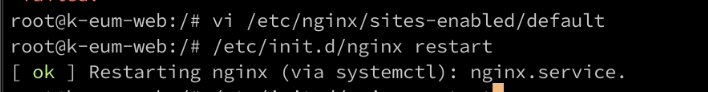 3. default 사이트 설정 파일의 변경 사항을 저장한 뒤, 서버를 재시작한다.