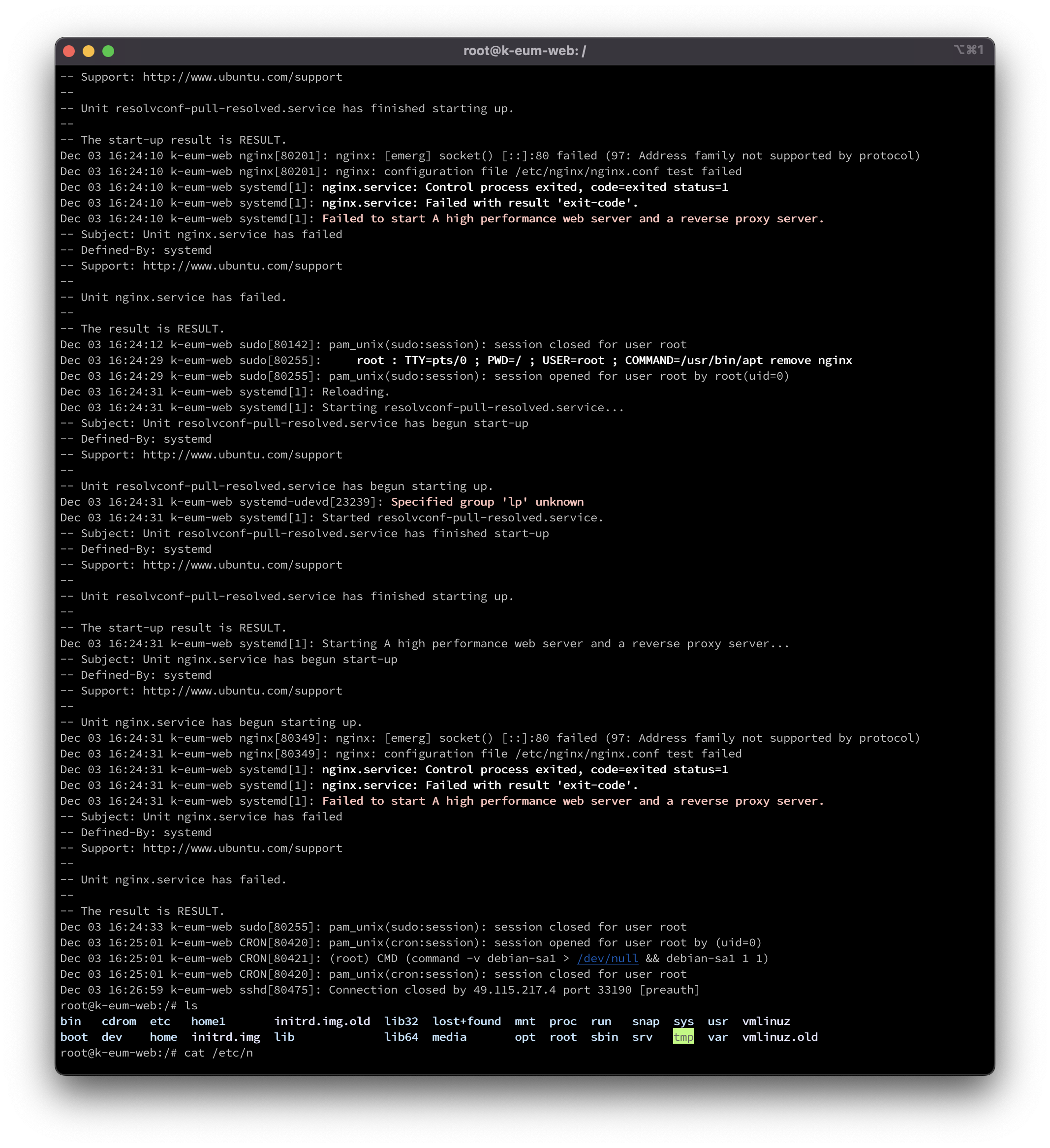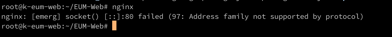 ipv6의 사용을 하지 않는 서버의 경우에 nginx 기본 설치 파일 중 /etc/nginx/sites-enabled/default (deafault 파일 설정 파일) 내부에 있는 ipv6 관련 설정 부분과 충돌하여 문제가 발생하게 된다.